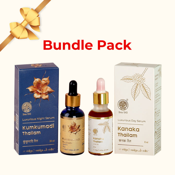 Unearth the timeless beauty secret of Kanaka Thailam, as whispered in the sacred pages of Ayurveda! This exquisite oil-based serum is enriched with the natural wonders of Madhuka, Priyangu, Manjistha, Rakta Chandana, Utpala, Nagakesara and lovingly processed in virgin sesame oil.