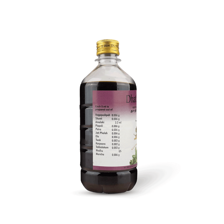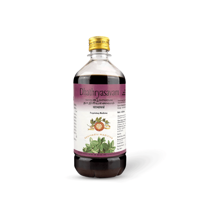 450 ml of AVP Dhathryasavam contains the excellent benefits of Indian Gooseberry (Amla), Cardamom, Cinnamon, Pepper, Long Pepper etc. along with other vital herbs.