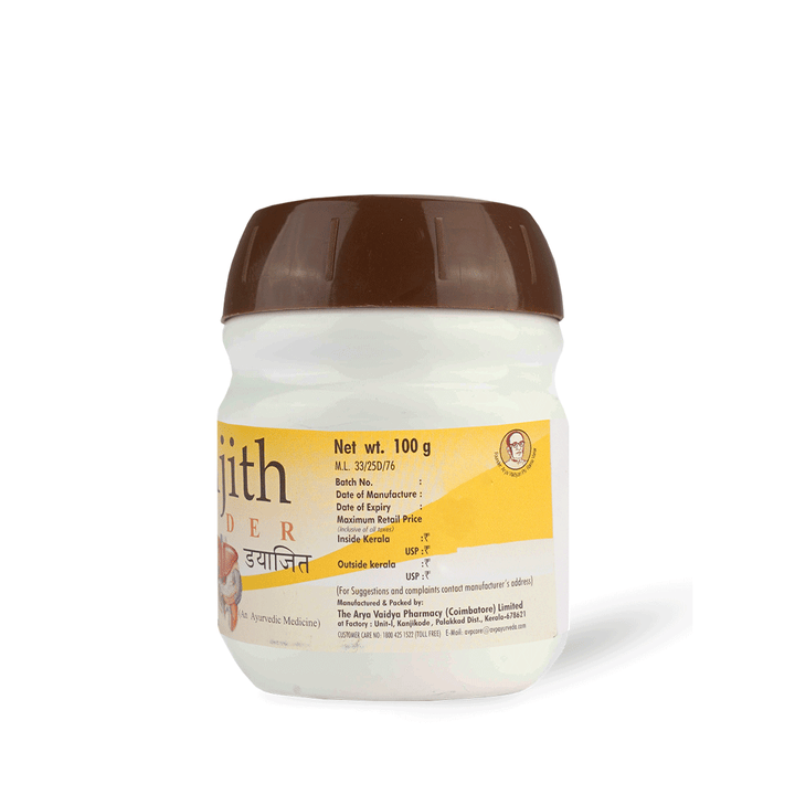 AVP Diajith Powder is a combination of herbs that has therapeutic benefits. It is meant to be consumed appropriately in the prescribed dosage and method mentioned earlier. Consult our Ayurveda Vaidya if you have more concerns.