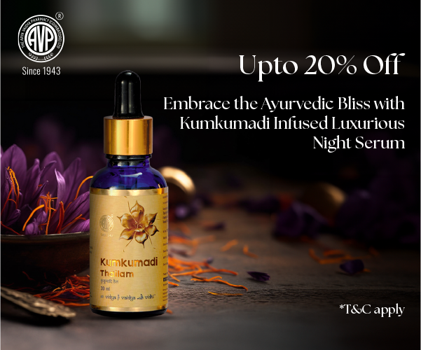 Kumkumadi Thailam is a revered Ayurvedic composition celebrated for its remarkable ability to enhance skin health and unveil natural complexion. Its unique formula works diligently to repair and rejuvenate the facial skin, countering the effects of environmental stressors. The result: an even skin tone and a radiant, healthy glow that reflects your inner beauty!